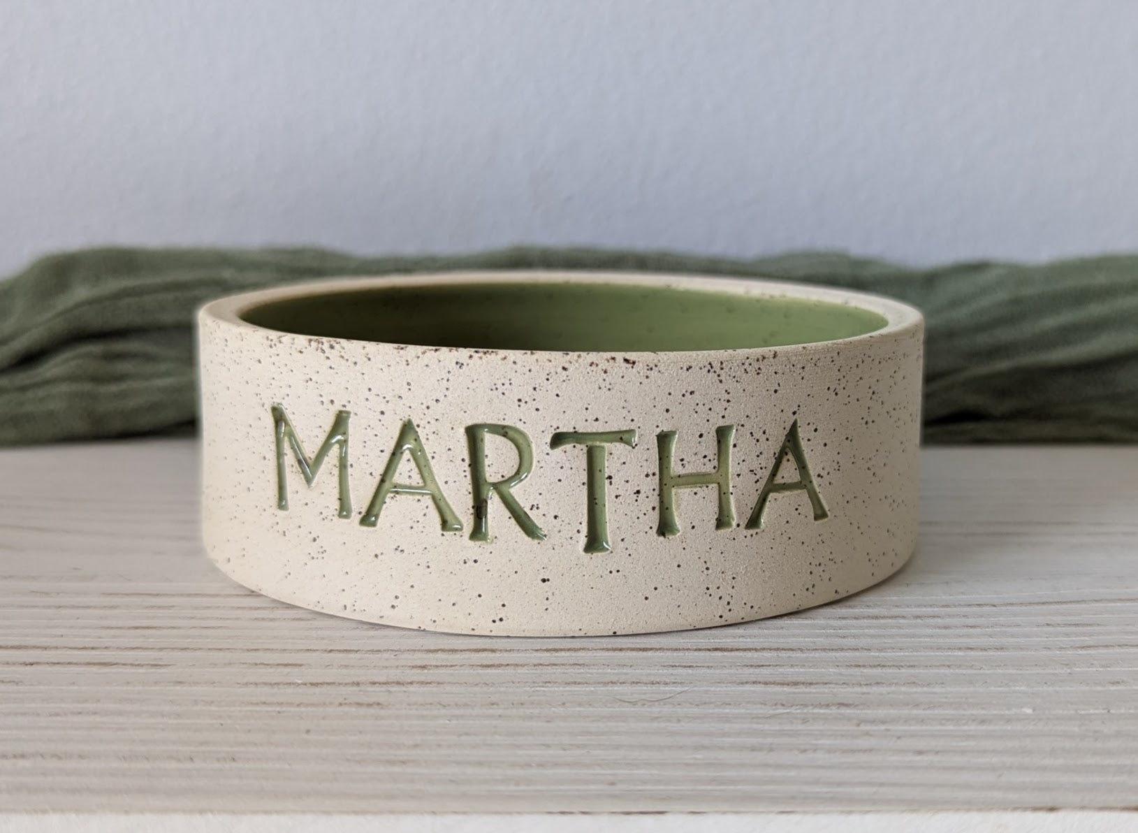 Each bowl is handmade on my ceramic wheel. Just pick your style and glaze color and I'll make it for you. Add your pets name in the "personalization" area if you select the style of bowl with a name on it. I can also add something like "water or food" just put it in the "personalization" area. Thanks!